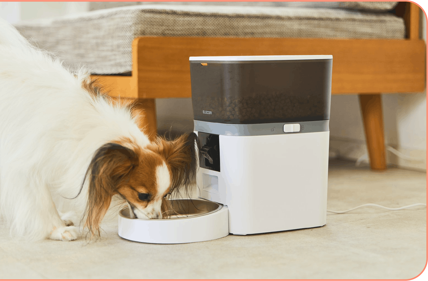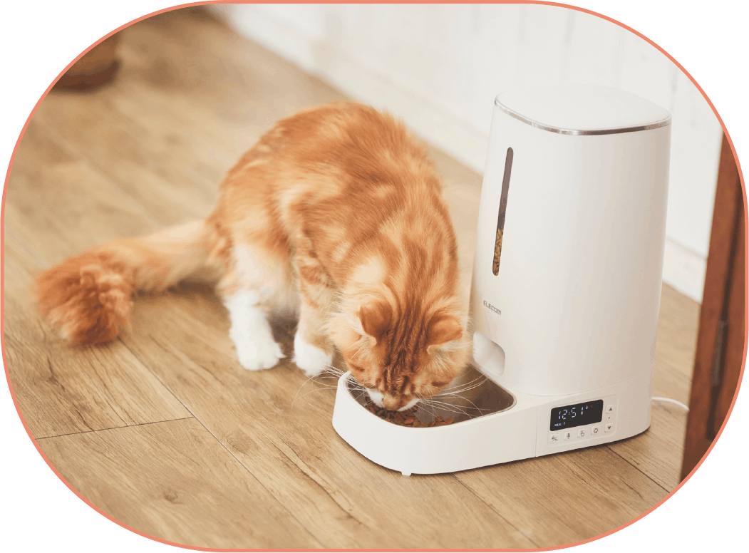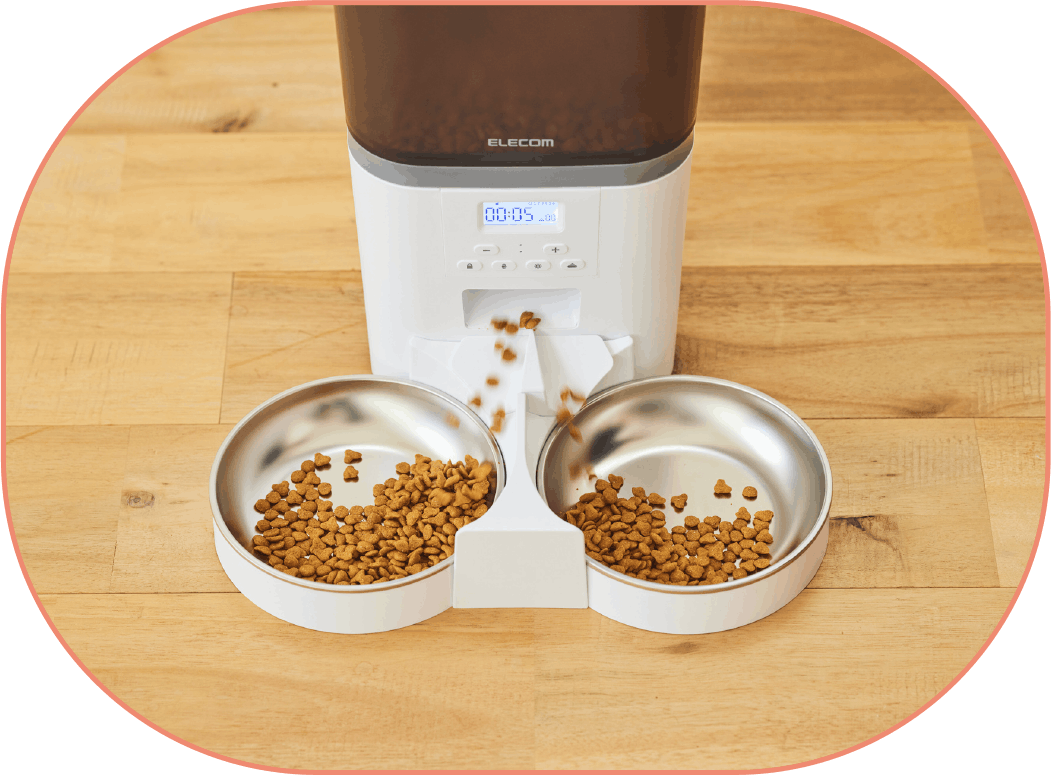 自動でペットに餌を与えられる自動給餌器。
