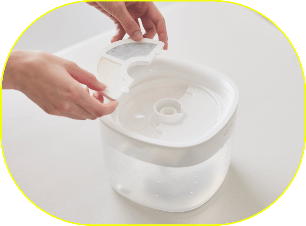 - 高密度の三層フィルターで水を常に