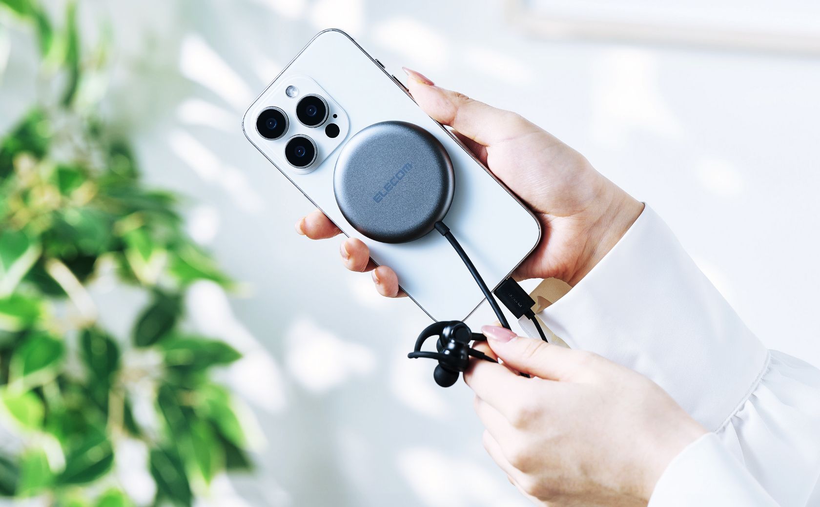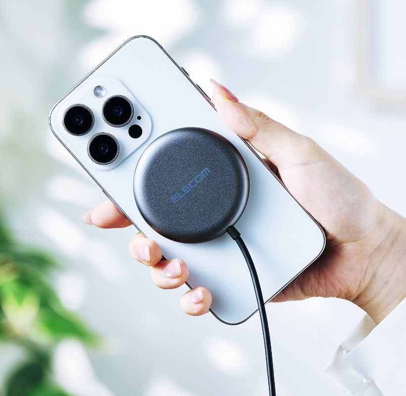 Qi2の15W出力から25W出力になったのでより高速でスマホ等の機器を充電できます。また充電ポートを使わないので劣化や破損が少なく、マグネットで自然に位置が合うのでコネクタが刺さらないということはありません。また、有線イヤホンなどのアクセサリと一緒に使えます。