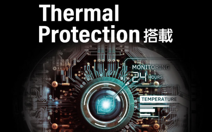 筐体などの強度や熱対策にも十分な配慮を行っており、通電時に温度を監視することで、お使いの機器を守る「Thermal Protection」を採用するなど、より安全に使える設計になっています。