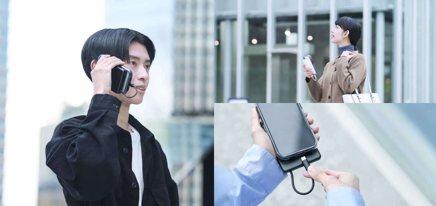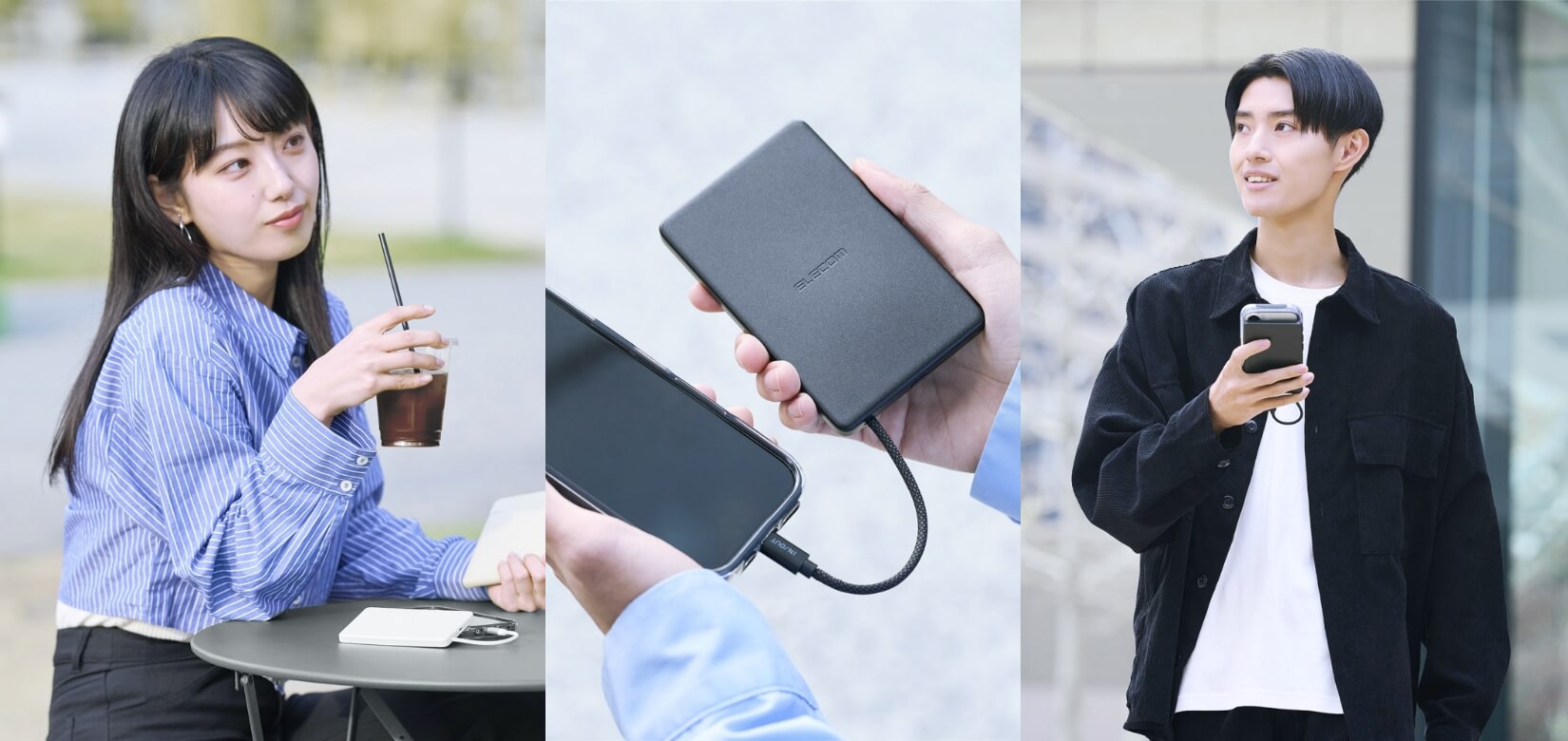 ケーブルを別途持ち運ばなくても、スマートフォンへの充電はもちろんのこと、バッテリーへの充電もできます。
