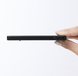 高い安全性、長寿命、幅広い温度範囲を有しながら、広く一般的に普及しているリチウムイオン電池搭載のモバイルバッテリーとあまり変わらない電池体積。そのため、携帯性が高く日常的に持ち運びやすくなっています。