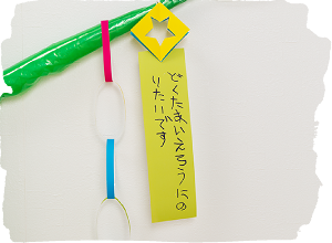 - 4)「笹」を印刷、切って枝の先にとめてできあがり。
