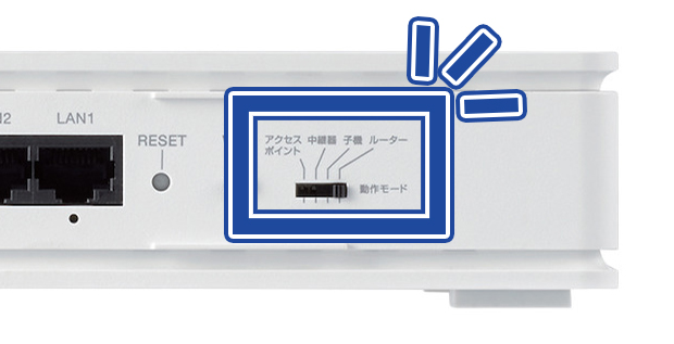 中継器モードに使うWi-Fiルーターの背面にある動作モード切り替えスイッチを、「中継器」に変更します。