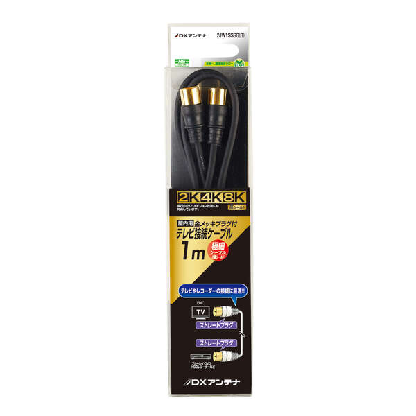 既存の2K放送から4K・8K(3224MHz)放送まで対応した製品です。壁のテレビ端子とテレビやレコーダーなどの接続に最適な、接続ケーブルです(1m)。両端ワンタッチ式ストレートプラグを採用。細くて取り回しがしやすい2Cケーブルです。プラグ部分は金メッキで接触不良を防ぎます。ケーブル色 ブラックタイプ。
