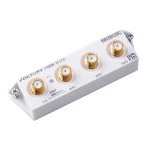 新4K8K衛星放送に対応した3分配器です。テレビの電波を3つに分けます。入力出力端子(F形プラグ)を一列に並べたスリム形です。テレビ、レコーダー、テレビチューナー付パソコンなどを増設する時に使用します。テレビやレコーダーへの接続は別売の同軸ケーブルを使用します。プラグは金メッキ採用。信号劣化や接続不良を防止します。本体内部にダイカストケースを採用した高シールド設計で、携帯電話や各種無線サービスなどの電波干渉を抑制します。入力端子と全出力間は通電形です。通電LED機能付。壁面へはネジ止めによる取付構造です。JEITA SHマーク認証済。白色モデルです。