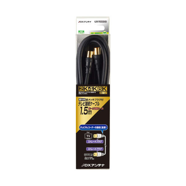 既存の2K放送から4K・8K(3224MHz)放送まで対応した製品です。壁のテレビ端子とテレビやレコーダーなどの接続に最適な、接続ケーブルです(1.5m)。両端ワンタッチ式ストレートプラグを採用。低損失4Cケーブル使用。プラグ部分は金メッキで接触不良を防ぎます。ケーブル色 ブラックタイプ。