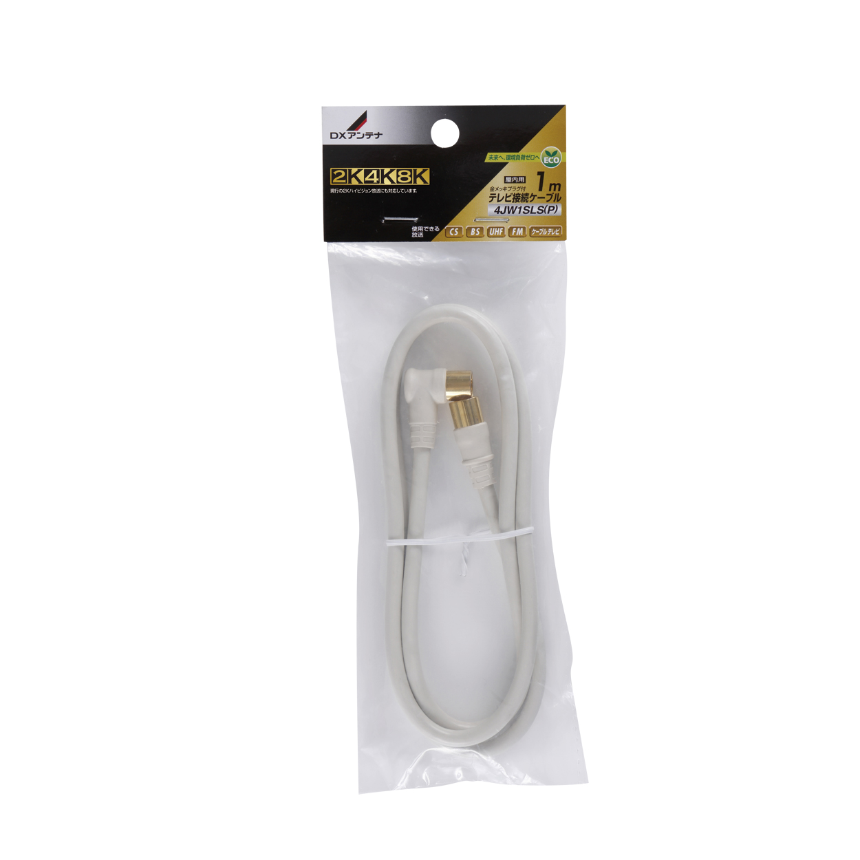既存の2K放送から4K・8K(3224MHz)放送まで対応した製品です。壁のテレビ端子とテレビやレコーダーなどの接続に最適な、接続ケーブルです(1m)ワンタッチ式のL型プラグとストレートプラグを採用。低損失な4Cケーブルです。プラグ部分は金メッキで接触不良を防ぎます。