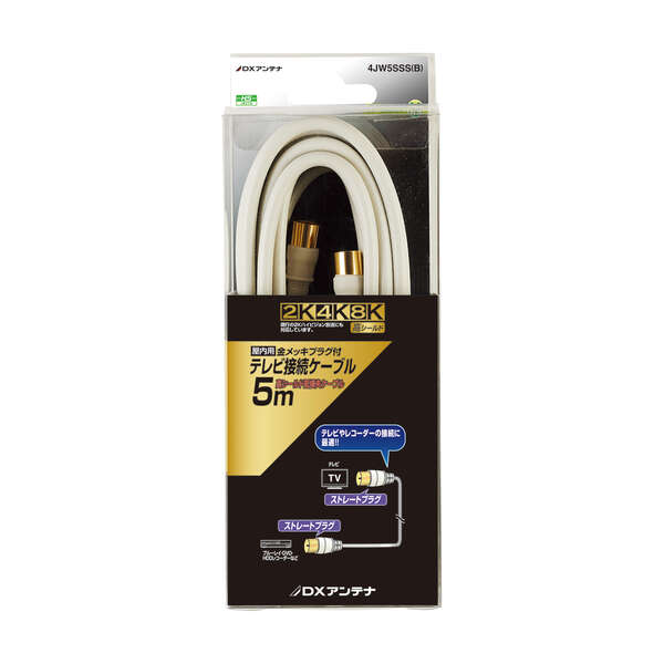 既存の2K放送から4K・8K(3224MHz)放送まで対応した製品です。壁のテレビ端子とテレビやレコーダーなどの接続に最適な、接続ケーブルです(5m)。両端ワンタッチ式ストレートプラグを採用。低損失4Cケーブル使用。プラグ部分は金メッキで接触不良を防ぎます。