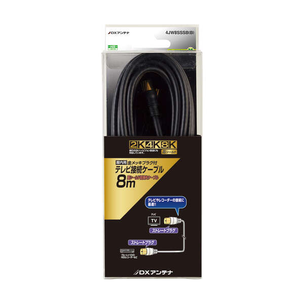 既存の2K放送から4K・8K(3224MHz)放送まで対応した製品です。壁のテレビ端子とテレビやレコーダーなどの接続に最適な、接続ケーブルです(8m)。両端ワンタッチ式ストレートプラグを採用。低損失な4Cケーブルです。プラグ部分は金メッキで接触不良を防ぎます。ケーブル色 ブラックタイプ。