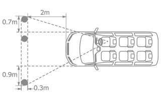 - 自動車の前方2mにある高さ1m、直径0.3mの円柱(6歳児を模したもの)を鏡などを用いず直接視認できること。