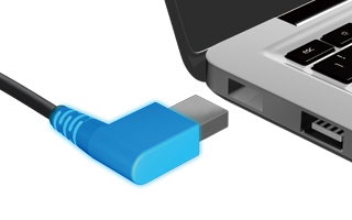 パソコン接続時に、横に飛び出さないL字コネクタを採用しています。