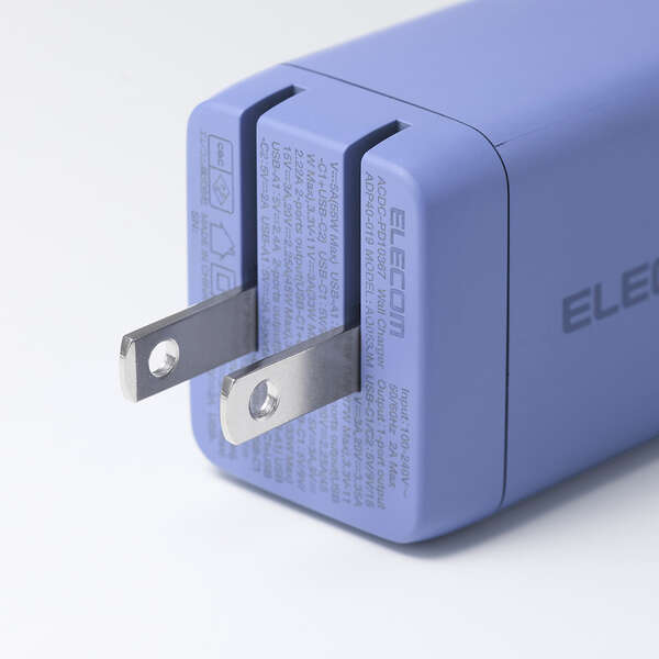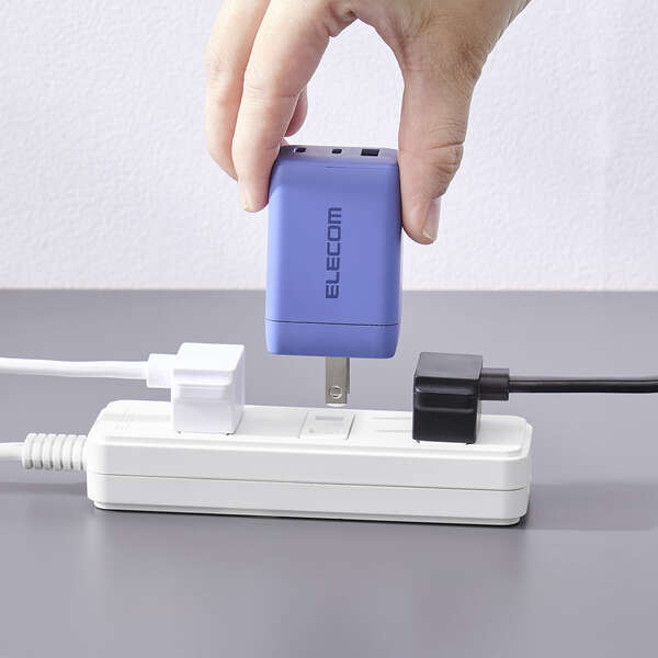 GaN II(窒化ガリウム)を採用し、高出力ながらコンパクトサイズを実現。プラグ部分も折り畳むことができるため、バッグの中でもスペースを取らず、ビジネスでの外出やリモートワーク、出張、旅行など持ち運びにも便利です。