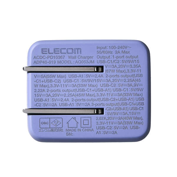 2ポート同時接続時は10W~45W、3ポート同時接続時は10W~40Wでの出力が可能。スマートフォンやタブレット、ワイヤレスイヤホン、電子タバコなどのデバイスを同時に充電できます。