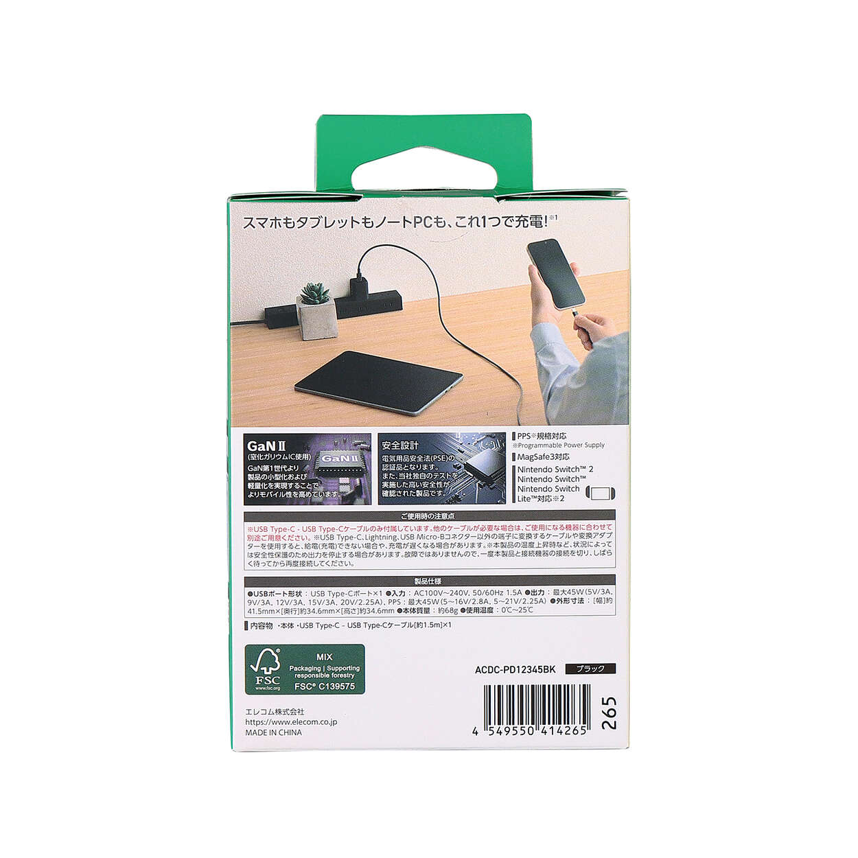 USB Type-C™ポートを搭載したAC充電器です。