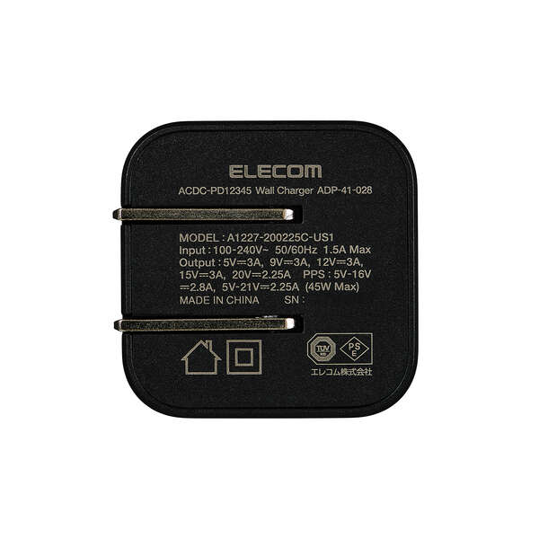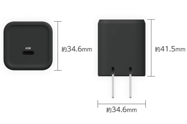 USB Power Delivery最大出力は45Wです。PPS(Programmable Power Supply)最大出力は45Wです。