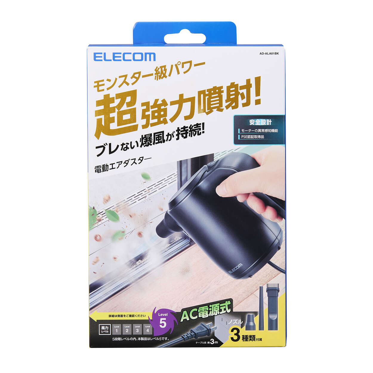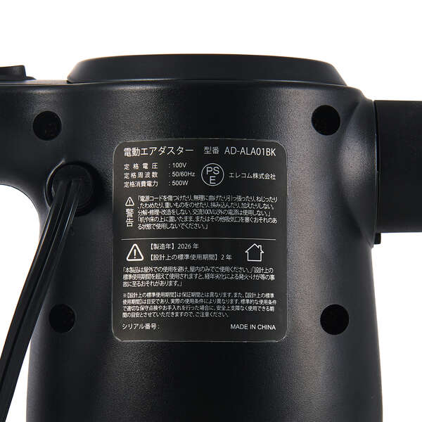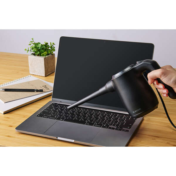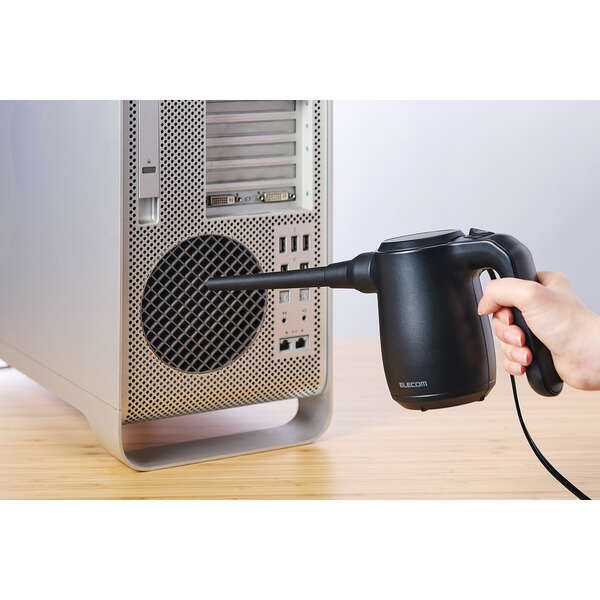 充電いらずで、いつでもフルパワー!コンセントに挿すだけでサッと使えるAC電源タイプの電動エアダスターです。約3mのロングコードで離れた場所までラクに届き、バッテリー切れの心配なく長時間の掃除に活躍。ハイクラスな風圧で頑固なホコリやゴミもしっかり吹き飛ばします。
