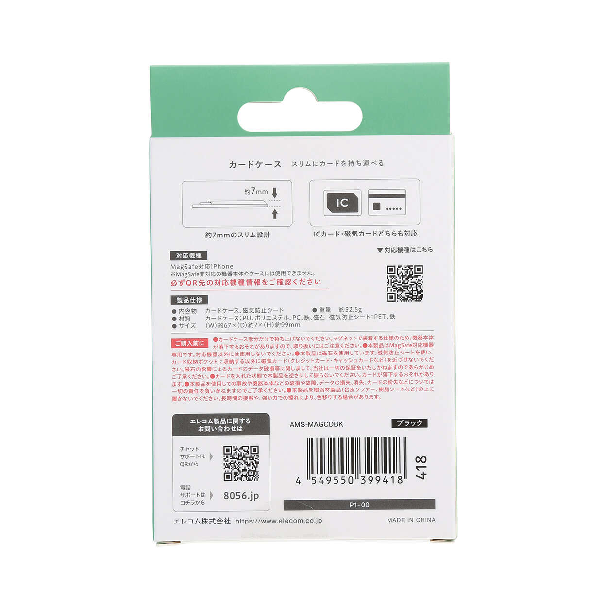 スマートフォンとICカードの干渉を防ぐ、磁気防止シートを付属。改札もスムーズに通れます。