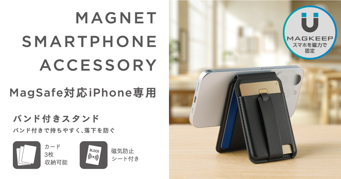 MagSafeで簡単に着脱できる、カードスタンドです。