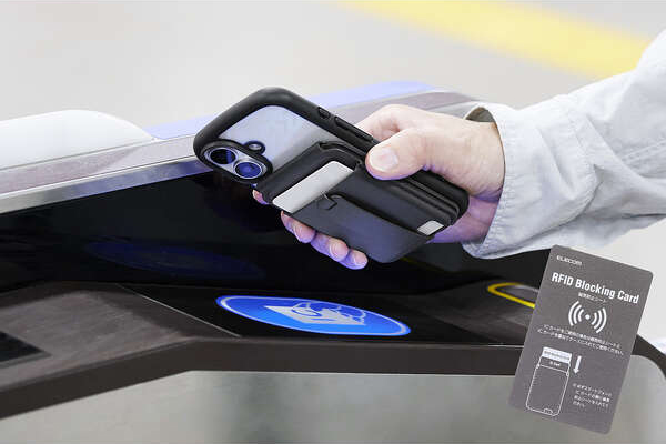 スマートフォンとICカードの干渉を防ぐ、磁気防止シートを付属。改札もスムーズに通れます。