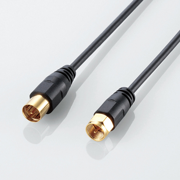 アンテナコンセントと、TVチューナー内蔵のパソコン、テレビ、チューナーなどを接続する、ネジ型プラグ-ストレート型プラグのアンテナケーブル。