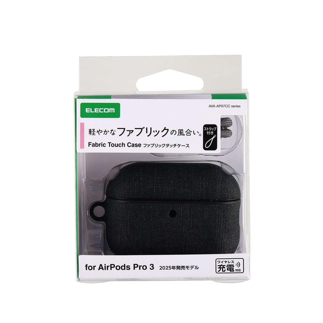 MagSafe充電にも対応!持ち運びしやすいストラップが付いた、軽やかで装いに溶け込む上質なAirPods Pro 3用ファブリックタッチケースです。