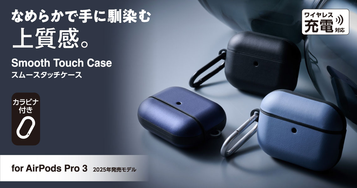 MagSafe充電にも対応!持ち運びしやすいカラビナが付いた、なめらかで手に馴染む質感のAirPods Pro 3用スムースタッチケースです。