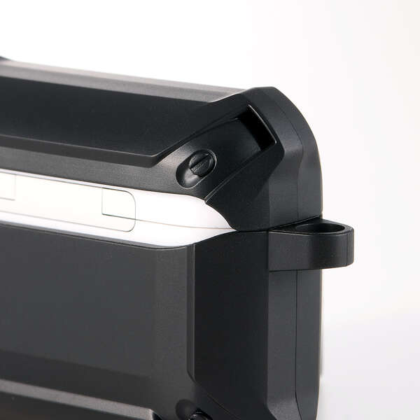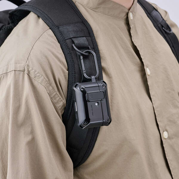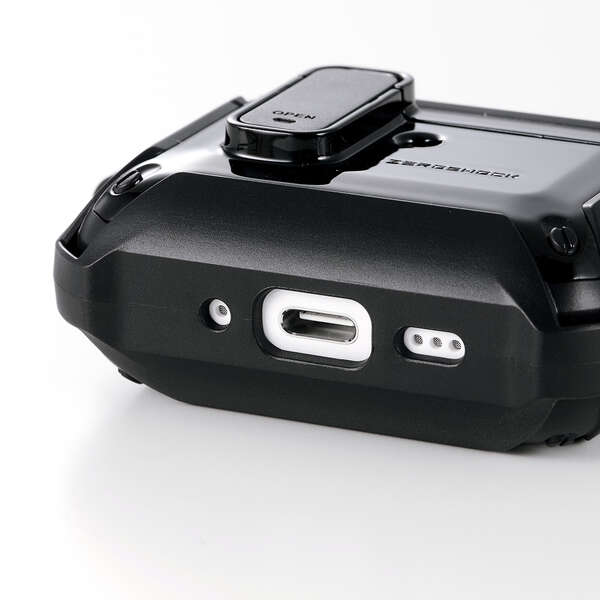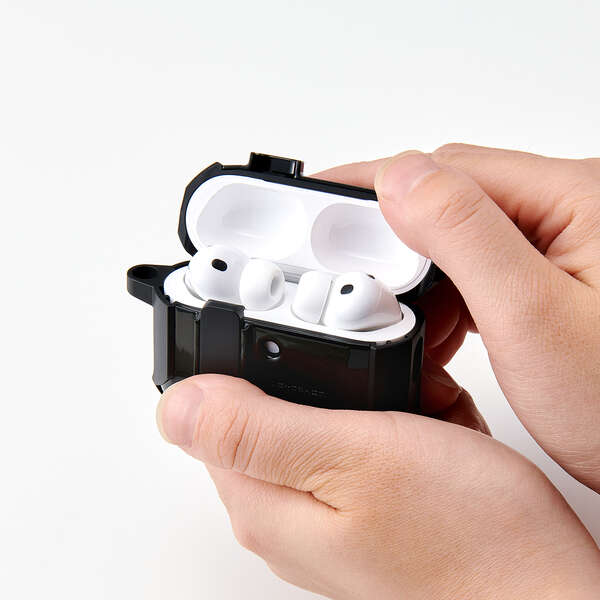 落下時の飛び出しを防ぐロック機能と、3つの衝撃吸収構造で衝撃から守るAirPods Pro 3用ZEROSHOCK Lockハイブリッドケースです。