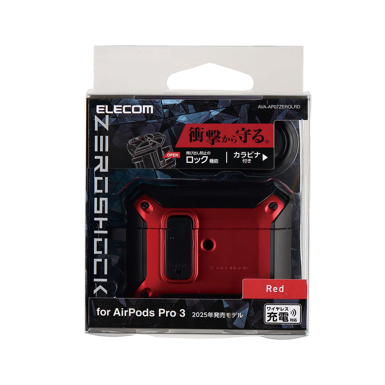 落下時に本体の飛び出しを防ぐロック機能付き!3つの衝撃吸収構造で衝撃から守るAirPods Pro 3用ZEROSHOCK Lockハイブリッドケースです。