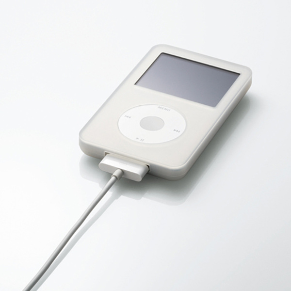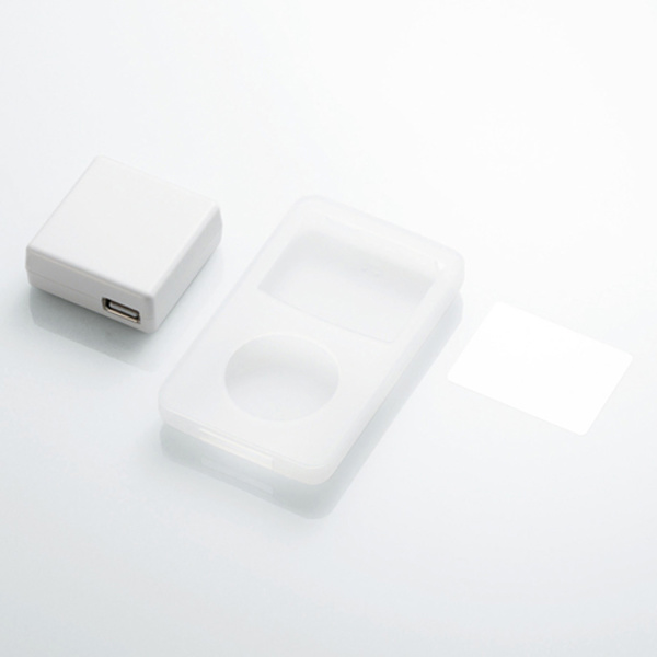 家庭用コンセントから簡単に充電できる充電器とシリコンケースのセット。iPod classicを快適に利用できる、充電器付きシリコンケース。