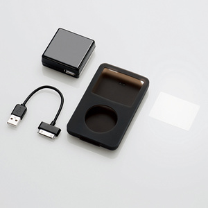家庭用コンセントから簡単に充電できる充電器とシリコンケースのセット。iPod classicを快適に利用できる、充電器付きシリコンケース。