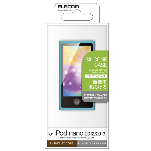 iPod nano 2012/2013をキズや汚れからしっかり守る!やわらかく手触りの良いシリコン素材を使用したシリコンケースとフルサイズ液晶保護フィルムのセット。