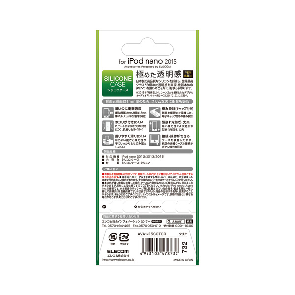 今までにないクリアな透明感を実現したiPod nano 2015用透明シリコンケースです。