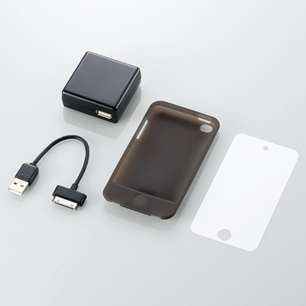 家庭用コンセントから簡単に充電できる充電器付き!2010 iPod touchを快適に利用できる、充電器付きシリコンケース。