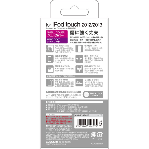 iPod touch 2012/2013をキズや汚れからしっかり守る!軽くて丈夫なポリカーボネート製のシェルカバーとフルサイズ液晶保護フィルムのセット。