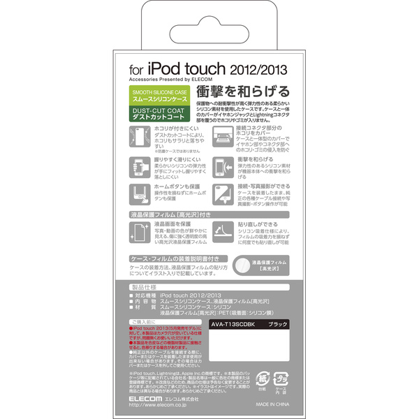 ダストカットコーティング加工とケース一体のカバーでホコリ対策された、ポップな色使いのiPod touch 2012/2013用シリコンケース。