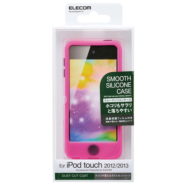 ダストカットコーティング加工とケース一体のカバーでホコリ対策された、ポップな色使いのiPod touch 2012/2013用シリコンケース。