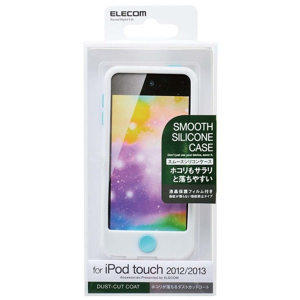 ダストカットコーティング加工とケース一体のカバーでホコリ対策された、ポップな色使いのiPod touch 2012/2013用シリコンケース。