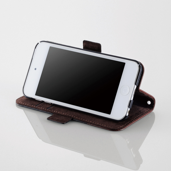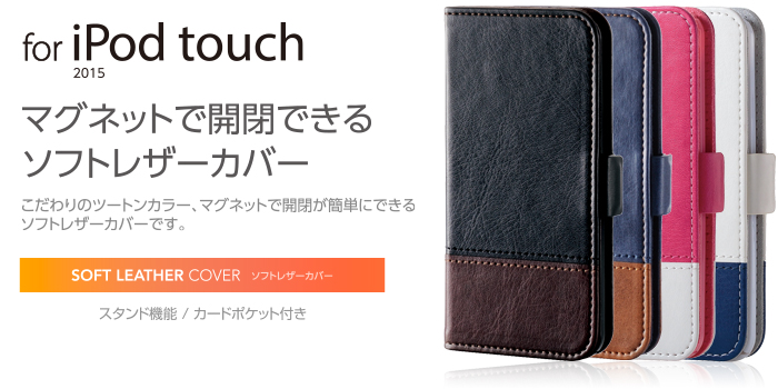 フラップ内側にポケットを備えて日常での使いやすさを向上させた、ツートーンデザインのiPod touch 2015用ソフトレザーカバーです。