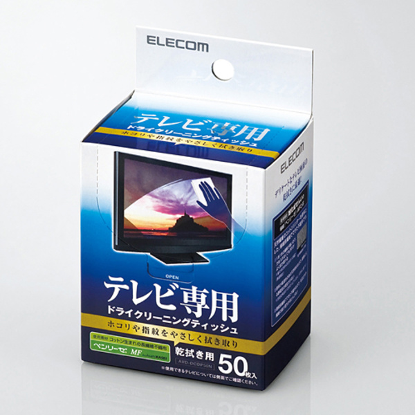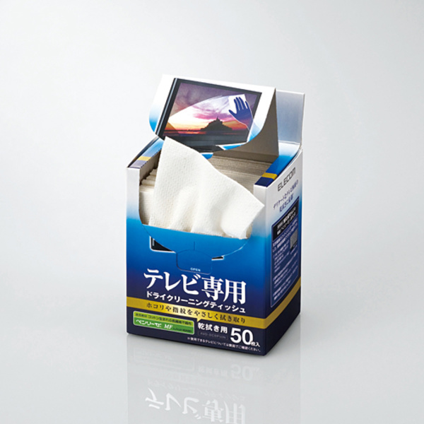 極細の長繊維が汚れをしっかりキャッチ!やさしくなでるだけでテレビ画面の汚れやホコリをきれいに拭き取る、テレビ用ドライクリーニングティッシュ。