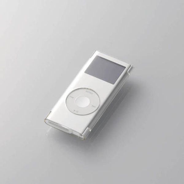 ポリカーボネイト製の2nd iPod nano専用クリアケースです。ホイール部の保護フィルム付。Dockカバー付。ケースをつけたままでも使用できるDockアダプタ付。