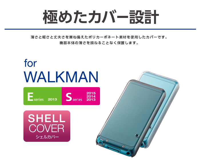 SONY WALKMAN S、Eシリーズにぴったりフィットして、キズや汚れからしっかり守るポリカーボネート製のシェルカバーです。