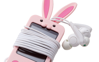 絡まりやすいケーブルを本体に巻きつけ、うさぎの耳の間にはさんでイヤホンを固定することができます。