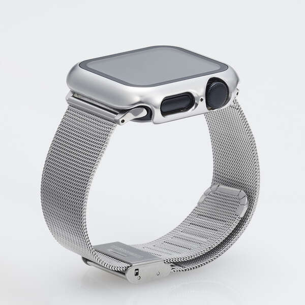 Apple Watch 40mm用フルカバーケース/プレミアムガラス/高透明/メタリック/シルバー