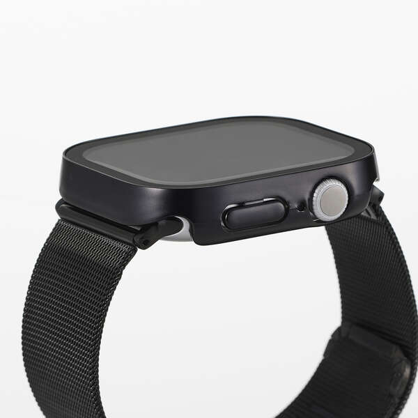 ポリカーボネート素材とガラスの2重構造で、Apple Watchの画面および側面部を保護します。