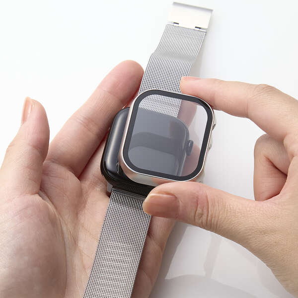 ポリカーボネート素材とガラスの2重構造で、Apple Watchの画面および側面部を保護します。