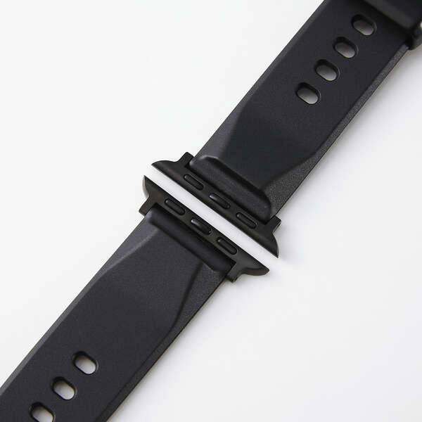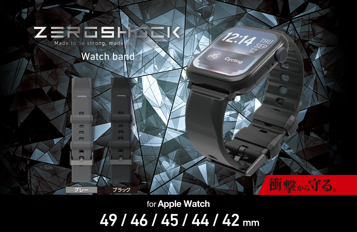 弾力性があり傷や汚れにも強いTPU(熱可塑性ポリウレタン)素材と、通気性の良い構造で手首にフィットし、日常からアクティブシーンまで快適に使えるApple Watch用ZEROSHOCKバンドです。