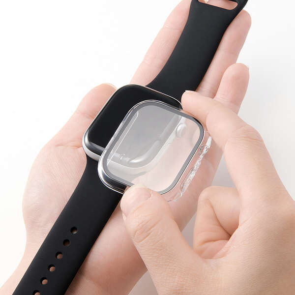 画面の視認性に優れる高透明なガラスとポリカーボネート樹脂で、機器本体を傷や汚れから守るApple Watch用フルカバーケースです。