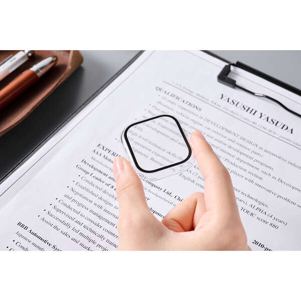 ポリカーボネート素材とガラスの2重構造で、Apple Watchの画面および側面部を保護します。