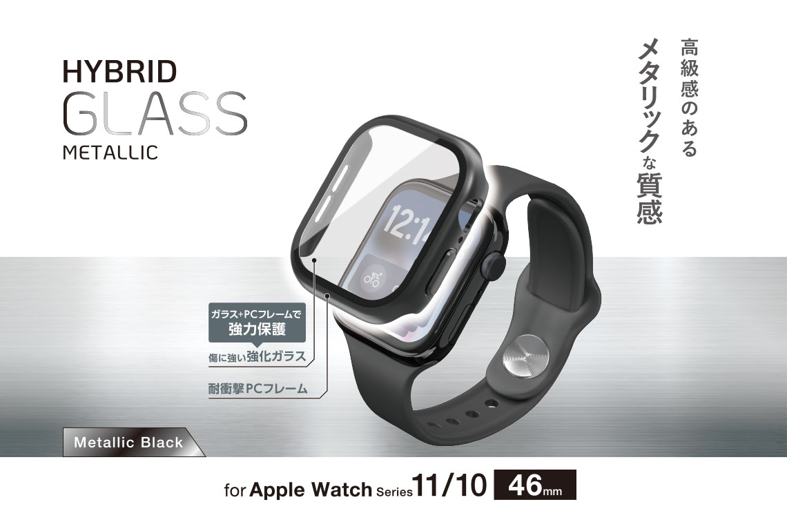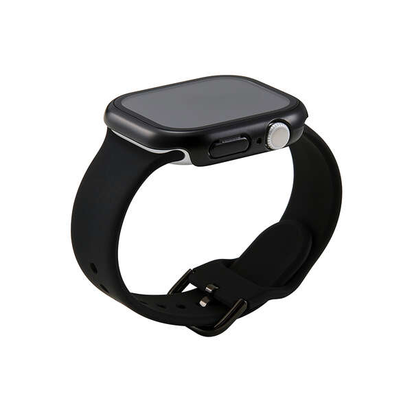 画面の視認性に優れる高透明なガラスとポリカーボネート樹脂で、機器本体を傷や汚れから守る、メタリックデザインが美しく際立つApple Watch用フルカバーケースです。